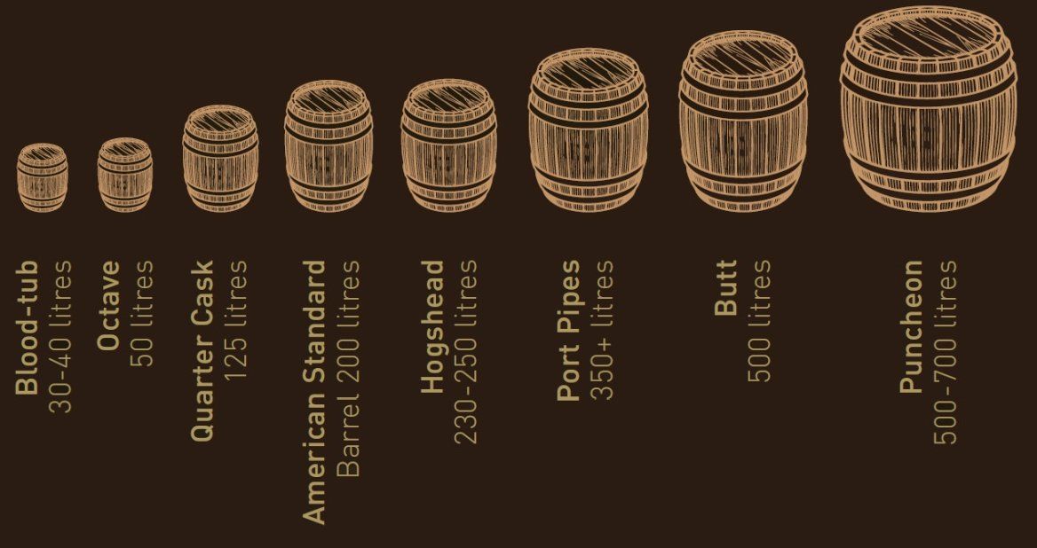 De kleinere hogsheads 225-250 liter zijn over het algemeen gemaakt van Spaans eiken en bevatten voor een rijpingsperiode van 1-2 jaar een 3e persing sherrydruiven of wijn, gemaakt van dezelfde rassen en volgens dezelfde methode als sherry, afkomstig uit gebieden, direct naast het sherrygebied.